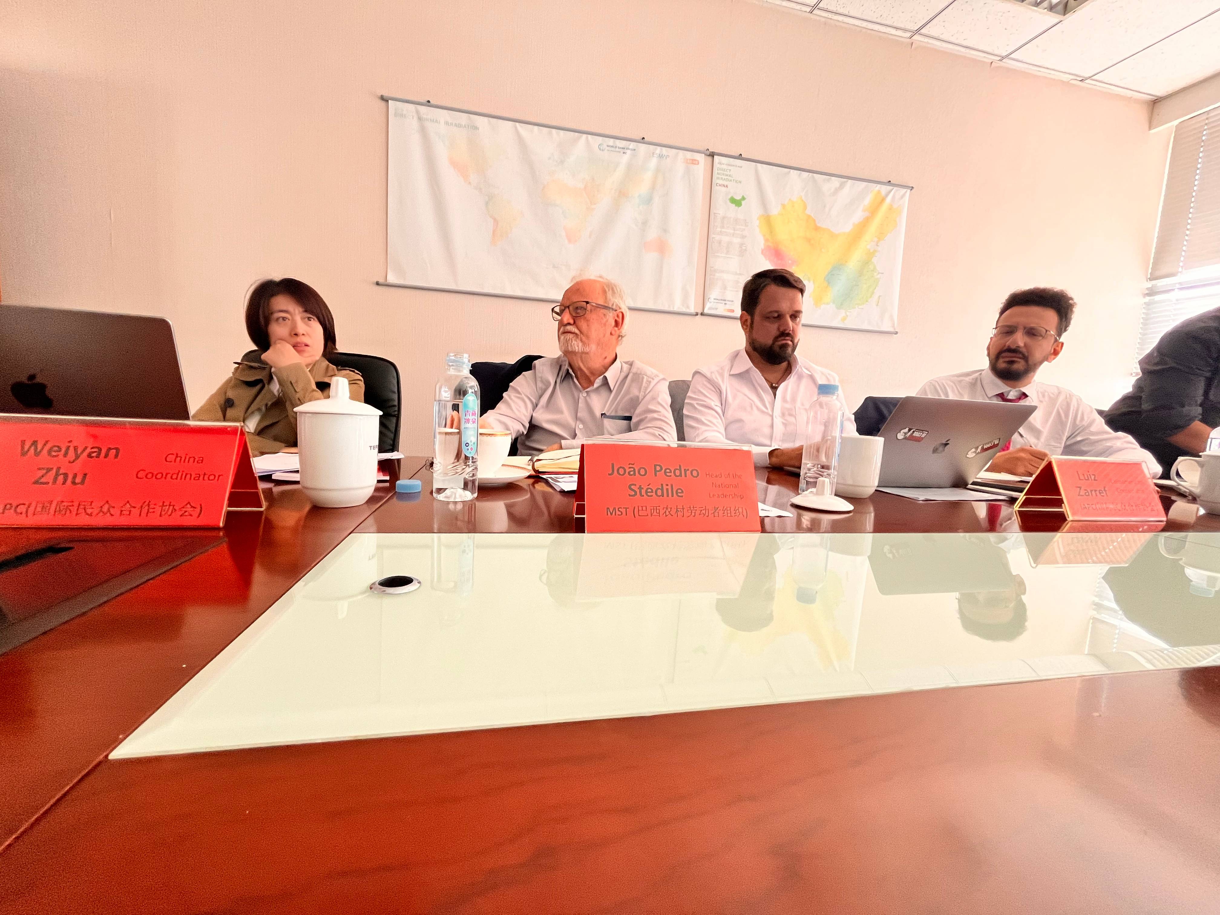 来自巴西农村劳动者组织的João Pedro Stedile(Head of the National Leadership of the MST)等一行7人来到兆阳光热公司,在热情洋溢的氛围中,双方进行了友好的握手与交谈,为接下来的深入交流奠定了坚实的基础。
